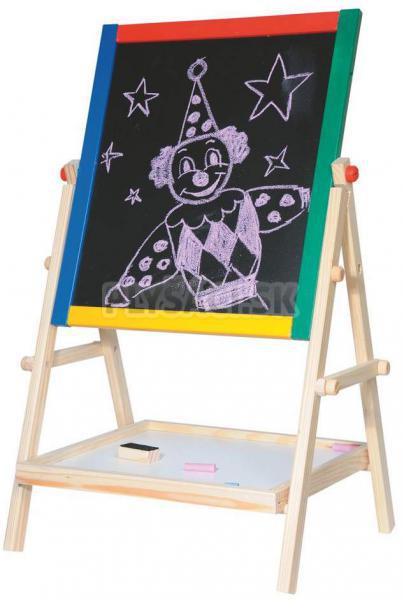 Drevená tabuľa s poličkou nesmie chýbať v žiadnej detskej izbe. Jedna jej strana je biela, pre písanie fixou a druhá je čierna, pre klasické kriedy. Na bielej d…